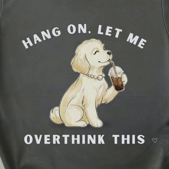 For the dog parents who feel everything and think it through twice—this tee says what your brain is already doing. Featuring a cozy, coffee-sipping pup and a perfectly unbothered-but-bothered vibe, it’s soft, premium, and made for slow mornings, long walks, and spiraling in style.